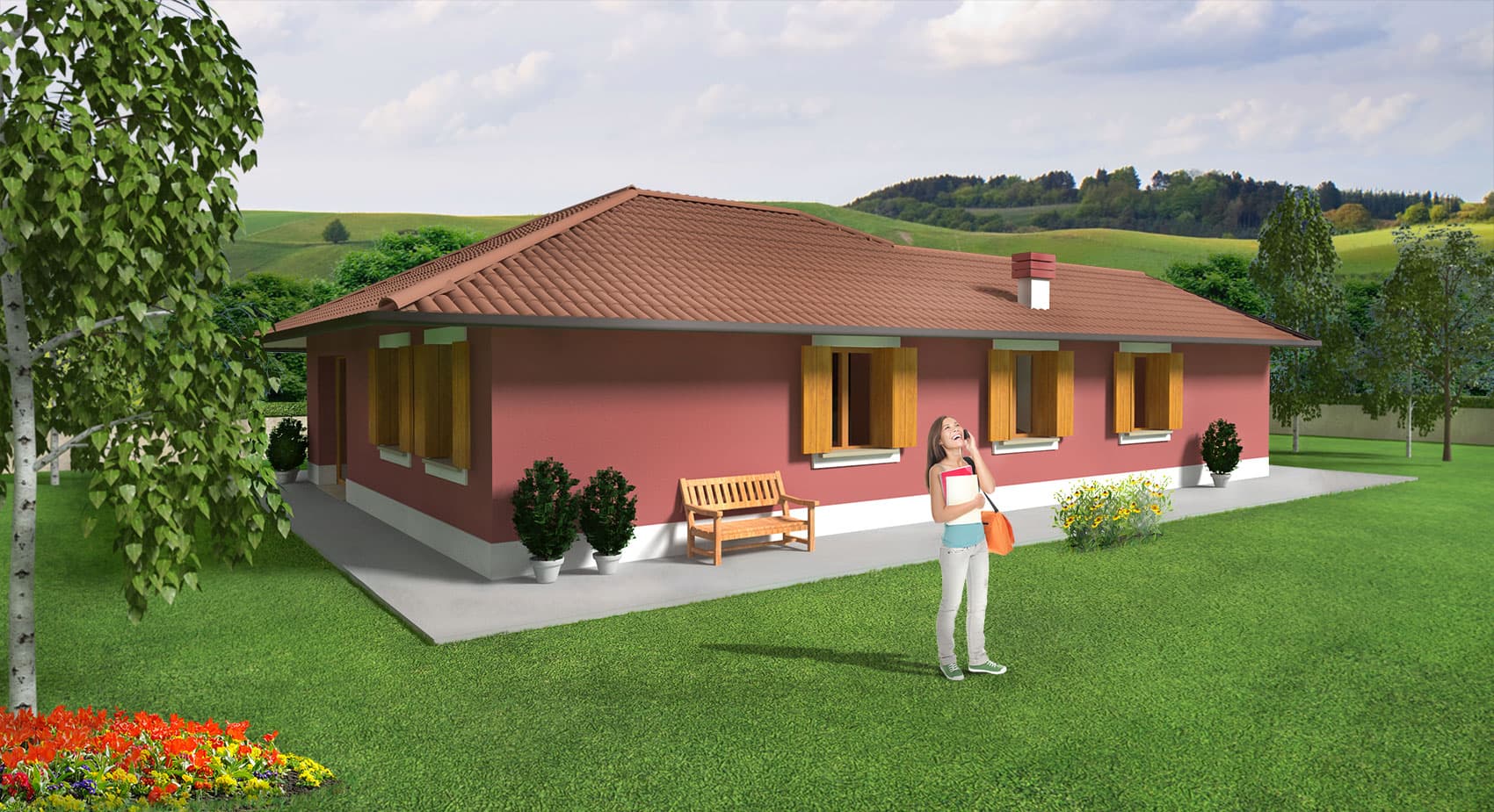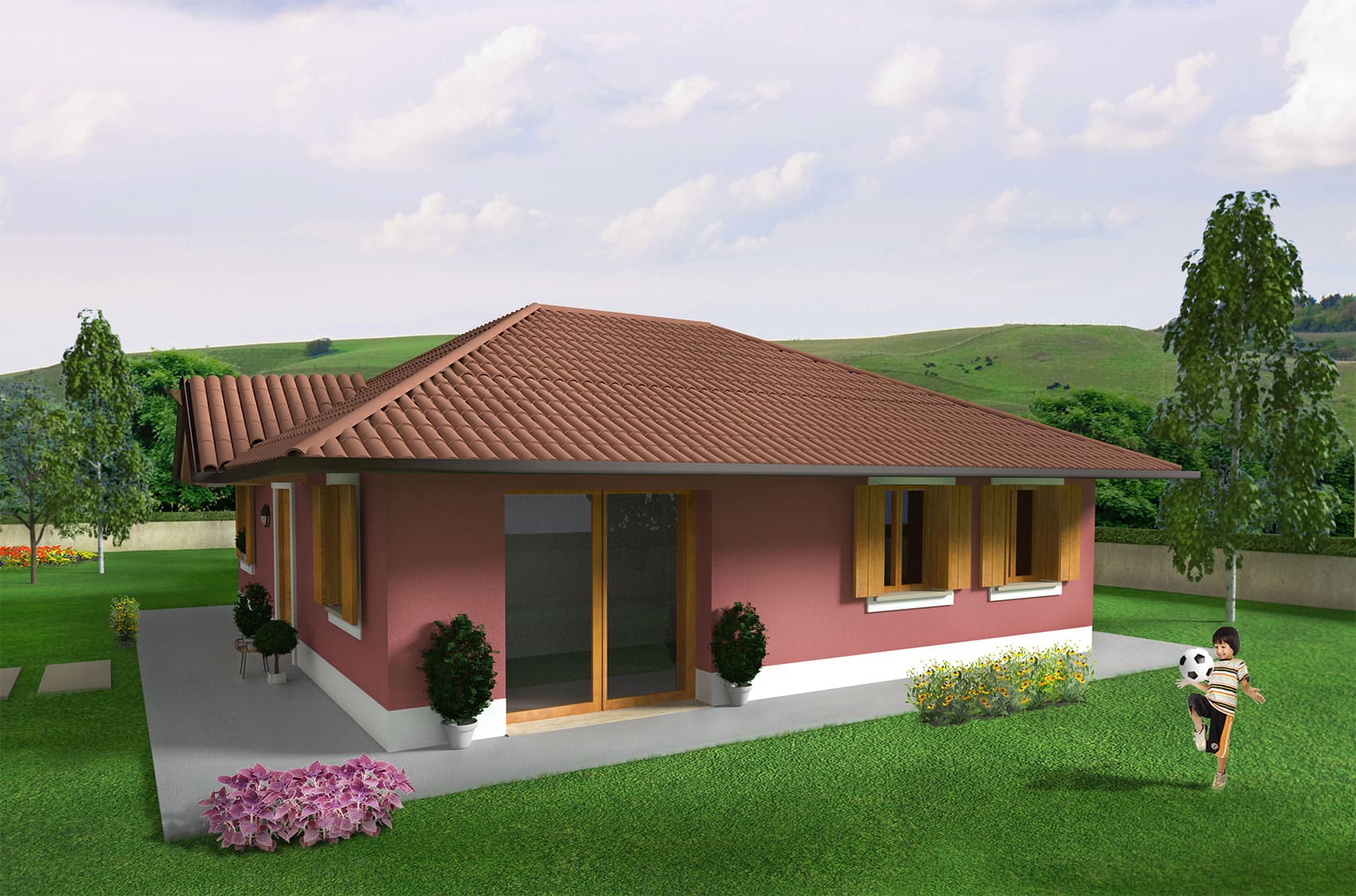 Ambretta is a house with a simple and essential style with an original play of the roof to distinguish the entrance to the building. Designed in a single level, it is characterized by its ergonomics and is in balance between functionality and style. The house of over 140 m.